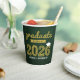 Bold Gold 'Graduate' Typography Sketch/Scribbles With A Graduation Cap / Mortarboard Accent On Retro Dark Green Chalkboard, Class Of 2026/2027 Graduation Party Paper Cup.