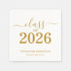 Stylish elegant custom graduation party supply! Celebrate the graduate's accomplishment in style with this trendy graduation paper napkin. Design features "Class of 2026" in gold font on a clean white background. Personalize this product by adding the name and school name. Easy to customize. Matching graduation party supplies available. Congratulations on your awesome achievement!