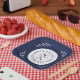 Throw an elegant graduation party featuring a chic navy blue on white typography emblem which reads: CLASS OF [YEAR] GRADUATE with the words curving around the year in the middle with curved botanical leaves along each side of the circular design. A wide navy border with white leaves in each corner surrounds the central design. Customize the year in the sidebar.
