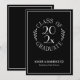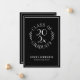 Send out modern graduation announcements featuring a chic white on black typography emblem which reads: CLASS OF [YEAR] GRADUATE with the words curving around the year in the middle with curved botanical leaves along each side of the circular design. Below the emblem is the graduate's name and school in a sleek white serif font. A fine white rectangle creates a border near the edge. Customize the year, name, and school in the sidebar. Personalize it for any type of graduate: high school, college, graduate school, law school, medical school, or trade school.