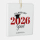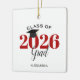 This graduation Christmas ornament is a perfect gift for the class of 2026 graduate. The design features the year in red with a mortarboard graduation hat. Personalize with graduate's name.
