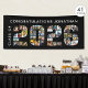 Congratulate and celebrate your Class of 2026 graduate with this modern black banner sign with 41 photos in the shape of the numbers 2026. Personalize the text at the top of the banner; the sample shows "Congratulations Name." BANNER OPTIONS: The sample is shown in the 2.5x6' indoor style--other sizes and "outdoor" are available on the ordering page as well as the option of transferring the design to a foam board, poster or other product or have the designer convert it to an instant digital download file for local printing PRIOR to personalizing it. ASSISTANCE: For design assistance, contact the designer BEFORE ORDERING via the Zazzle Chat MESSAGE tab or email makeitaboutyoustore@gmail.com.