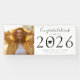 Modern and simple graduation party banner featuring the year 2026 with a graduation cap inside the zero. You can add the graduate's name, school, and year.