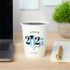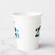 This paper cup features a modern light blue and black class of 2026 design. It offers custom text for the name of the graduate or the school name. The design is accented with a black graduation hat.