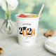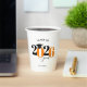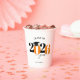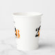 This paper cup features a modern orange and black class of 2026 design. It offers custom text for the name of the graduate or the school name. The design is accented with a black graduation hat.