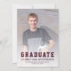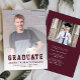 Graduation announcement featuring a custom vertical photo on the front and a smaller horizontal photo on the back. The word "Graduate" appears in bold burgundy typography with a sporty collegiate look ideal for the student athlete, with the graduate's name, school, and year of graduation below in sans serif font. Add details about the graduate's achievements and future plans on the back in white sans serif font on a burgundy background. A good choice for high school or college graduation.