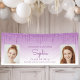 Welcome graduation party guests or simply announce her achievement with this chic, glamorous photo banner, featuring a sparkly purple faux glitter drip border and purple ombre background. Easily replace the two sample images with photos of the graduate. Personalize it with her name in purple handwriting script, with the class year and school in sans serif font. Perfect for high school or college graduation.