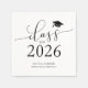 Elegant and simple graduation party supply! Celebrate the graduate's accomplishment in style with this graduation paper napkin. It says "Class of 2026" in script font against a white background. Personalize this product by adding their name and school name.