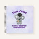 Square spiral notebook which says class of 20xx, customize with the year of graduation, a personal name and school. Designed with a light purple background. Illustrated with a cute koala bear with a black graduation cap eating some eucalyptus leaves.