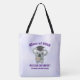A tote bag which says class of 20xx, customize with the year of graduation, a personal name and school. Designed with a light purple background. Illustrated with a cute koala bear with a black graduation cap eating some eucalyptus leaves.