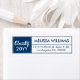 Elegant modern navy-blue geometric frame with Class+of 20xx modern typography design in white. White background with customizable text in suggested blue.