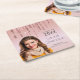 Class of 20XX Graduate Pink Glitter Custom Photo Square Paper Coaster