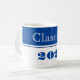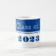 Grad class of coffee mug is shown in a royal blue and white colors design.