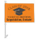 This cute graduation cap car flag is the perfect way to celebrate your senior! The orange and black design has a caption reading "Congratulations, Graduate!" with space for your graduate's name and graduating class year.