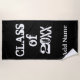 Class Of Enter Year Graduation Customized Beach Towel makes a great gift idea for a graduate! Customizable color black background with distressed white typography "Class of" student graduation year followed by personalized name.