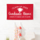 Celebrate the graduate with a custom banner. Personalize the banner and hang it up to make an eye-catching graduation party decor. You can also hang it at home or at an event. Make sure to change any colors and other design elements in the advanced design area.