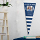 Class Of Grad Name Blue White Stripe Laurel Photo Pennant Flag