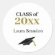 Class of sticker featuring a graduation cap along with year and name of graduation, ideal for party favors or envelope seal to go along with graduation invitation. customize online or contact ArtByLiz@gmx.com and it will be customized for you at no extra charge.