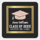 A nice black and white graduation-sticker for an elegant girl, personalized with her name, school and year... with the graphic image of a pinkish grad hat