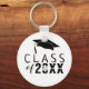 Modern Class of Typography Black Graduation Hat keychain. Trendy black typography with black graduation hat. Customize with the year number. Make a great gift and keepsake for a graduate.