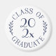 Chic navy blue on white typography emblem reads: CLASS OF [YEAR] GRADUATE with the words curving around the year in the middle with curved botanical leaves along each side of the circular design. Customize the year in the sidebar. Makes a fun graduation gift.