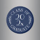 Chic white on navy blue typography emblem reads: CLASS OF [YEAR] GRADUATE with the words curving around the year in the middle with curved botanical leaves along each side of the circular design. Customize the year in the sidebar. Makes a fun graduation gift.