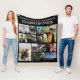 Modern graduation photo collage blanket design featuring space for 14 class photos. Personalize with school, college or university name and graduation year. Clean black background editable to match school colors. Perfect keepsake to celebrate your graduate.