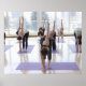 class practicing yoga with instructor in a poster