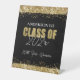 Class Reunion Black and Gold Glitter Welcome Pedestal Sign