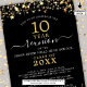 Modern and elegant class reunion invitation for any year reunion (shown for a 10 Year) featuring gold stars and lights, elegant handwritten script typography and a custom color background (shown in black) you can change to your school color or party theme color. All text is editable to make your own. This invitation is also available as a digital file download for sharing digitally or online. ASSISTANCE: For help with design modification or personalization, color change, resizing, transferring the design to another product or you would like coordinating items, contact the designer BEFORE ORDERING via the Zazzle Chat MESSAGE tab below or email makeitaboutyoustore@gmail.com.