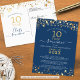 Modern and elegant class reunion postcard invitation for any year reunion (shown for a 10 Year) featuring gold stars and lights, elegant handwritten script typography and a custom color background (shown in blue) that you can change to your school color or party theme color. All text is editable to make your own. ASSISTANCE: For help with design modification or personalization, color change or transferring the design to another product or you would like coordinating items, contact the designer BEFORE ORDERING via the Zazzle Chat MESSAGE tab below or email makeitaboutyoustore@gmail.com.