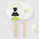 This fun hand fan is designed for a class reunion featuring a black artwork graduate with rolled scroll. The text and background are in bright green and white. Fill in the personal information template fields, remove any text or click customize to select a typeface color, size, and style your prefer.