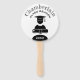 This fun hand fan is designed for a class reunion featuring a black artwork graduate with rolled scroll. The text and background are in black and white. Fill in the personal information template fields, remove any text or click customize to select a typeface color, size, and style your prefer.