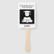 This fun hand fan is designed for a class reunion featuring a black artwork graduate with rolled scroll. The text and background are in black and white. Fill in the personal information template fields, remove any text or click customize to select a typeface color, size, and style your prefer.