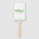 This fun hand fan is designed for a class reunion featuring a green artwork graduate with rolled scroll. The text and background are in green and white. Fill in the personal information template fields, remove any text or click customize to select a typeface color, size, and style your prefer.