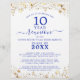 Modern and elegant class reunion invitation flyer printed on lightweight thin paper (not cardstock) for any year reunion (shown for a 10 Year) featuring gold stars and lights and elegant calligraphy script typography in royal blue. All text is editable, including font styles and colors, to make your own. OPTIONS: The sample is shown on an 8.5x11" flyer; other sizes and paper type are available on the ordering page. ASSISTANCE: For help with design modification or personalization, color change, resizing, transferring the design to another product or you would like coordinating items, contact the designer BEFORE ORDERING via the Zazzle Chat MESSAGE tab below or email makeitaboutyoustore@gmail.com.