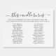 Class Reunion Memorial Names Candle Foamboard Sign. Honor the memory of classmates who are forever in your hearts with this elegant Class Reunion memorial sign printed on sturdy foam core for convenient easel or tabletop display next to a candle. Featuring the editable touching phrase "This candle burns" followed by a heartfelt remembrance message or your custom text and a customizable list of names, this design creates a meaningful tribute at reunion gatherings. The modern soft script and classic typography in black and white offers a timeless and respectful presentation suitable for remembrance tables or memorial displays. Personalize with your classmate names to create a lasting tribute that brings reflection, connection and honor to those no longer with you. This design has up to 26 names but more can be added by changing the font size and/or line spacing in EDIT. The sample is shown in the 24x18" horizontal size; other sizes are available on the ordering page. ASSISTANCE: For design assistance, contact the designer via Zazzle Chat or makeitaboutyoustore@gmail.com