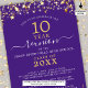 Modern and elegant class reunion invitation for any year reunion (shown for a 10 Year) featuring gold stars and lights, elegant handwritten script typography and a custom color background (shown in purple) you can change to your school color or party theme color. All text is editable to make your own. This invitation is also available as a digital file download for sharing digitally or online. ASSISTANCE: For help with design modification or personalization, color change, resizing, transferring the design to another product or you would like coordinating items, contact the designer BEFORE ORDERING via the Zazzle Chat MESSAGE tab below or email makeitaboutyoustore@gmail.com.