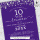 Modern and elegant class reunion invitation for any year reunion (shown for a 10 Year) featuring silver stars and lights, elegant handwritten script typography and a custom color background (shown in purple) you can change to your school color or party theme color. All text is editable to make your own. This invitation is also available as a digital file download for sharing digitally or online. ASSISTANCE: For help with design modification or personalization, color change, resizing, transferring the design to another product or you would like coordinating items, contact the designer BEFORE ORDERING via the Zazzle Chat MESSAGE tab below or email makeitaboutyoustore@gmail.com.