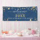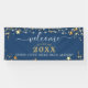 Create a class reunion welcome banner sign featuring the title WELCOME in a modern calligraphy script typography, Class of Year and name of your school, college or university alumni or other custom text with gold stars and string lights in your choice of text and background colors (shown in blue, gold and white) you can change to school colors or party theme colors in EDIT. BANNER OPTIONS: The sample is shown in the 2.5x6' indoor style--other sizes and "outdoor" are available on the ordering page as well as the option of transferring the design to a foam board, poster, tapestry or other product or have the designer convert it to a DIGITAL DOWNLOAD file before personalizing it for printing locally. ASSISTANCE: For help with design modification/personalization, color change, resizing, transferring the design to another product or if you would like coordinating items, contact the designer BEFORE ORDERING via Zazzle Chat or makeitaboutyoustore@gmail.com.
