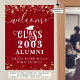 Welcome alumni to their high school or college class reunion (editable for any year reunion) with this custom color poster sign featuring gold stars, string lights, handwritten script and decorative typography and personalized with your school name and graduating class year in your choice of colors (shown with white text and graphics on an editable red background). The colors can be changed to your school colors or coordinating party theme colors. POSTER PRINT OPTIONS: The sample is shown in an 18x24" size--other sizes are available or the design can be transferred to a foamboard, banner, tapestry backdrop or downloaded as a digital file for local printing on the ordering page. ASSISTANCE: For help with design modification or personalization, color change, resizing, transferring the design to another product or converting to a Download file, contact the designer BEFORE ORDERING via the Zazzle Chat MESSAGE tab below or email makeitaboutyoustore@gmail.com.