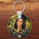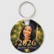 This graduation design features a bright portrait in cap and gown with bold class year text, elegant script lettering, and a small graduation cap accent. The black and gold styling creates a crisp high-contrast look that feels formal and easy to notice. The photo and class year can be changed for the graduate shown. It is a compact graduation portrait design with a polished and readable layout.