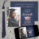 Class Year Navy Blue and Pink Graduation Photo Invitation