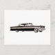 This classic Packard Clipper illustration post card with a long black body with white trim stripe and the offsetting white roof.