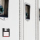 Reminisce about the good old days with these nearly lifesize floppy disk magnets. Black and red.