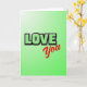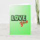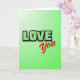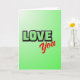 This card features the words “LOVE You” as the main focus, making the message easy to see right away 🥰. “LOVE” is written in big capital letters that look slightly 3D, colored pale green with a black outline, and it sits near the top center. Just below it and a bit to the right, “You” appears in smooth red cursive, with a softer look that contrasts nicely with the sharper letters above. The background is a green gradient that starts as a light lime glow in the upper left and deepens into a darker green toward the bottom. The red “You” stands out against all that green, which makes the whole card feel warm and direct ❤️. It feels meaningful to give because it says what you want to say without extra fuss, whether it’s for a partner, a close friend, or someone you’re sweet on. Share it to pass along a little Valentine’s Day love and let someone know they matter.