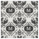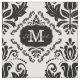 Classic and Chic Black White Damask Monogram Name Fabric