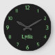 Classic and Elegant Black and Neon Mint Name Large Clock