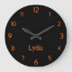 Classic and Elegant Black and Sunset Orange Name Large Clock