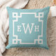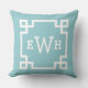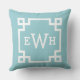 Classic Aqua Greek Key Monogram Initial Throw Pillow